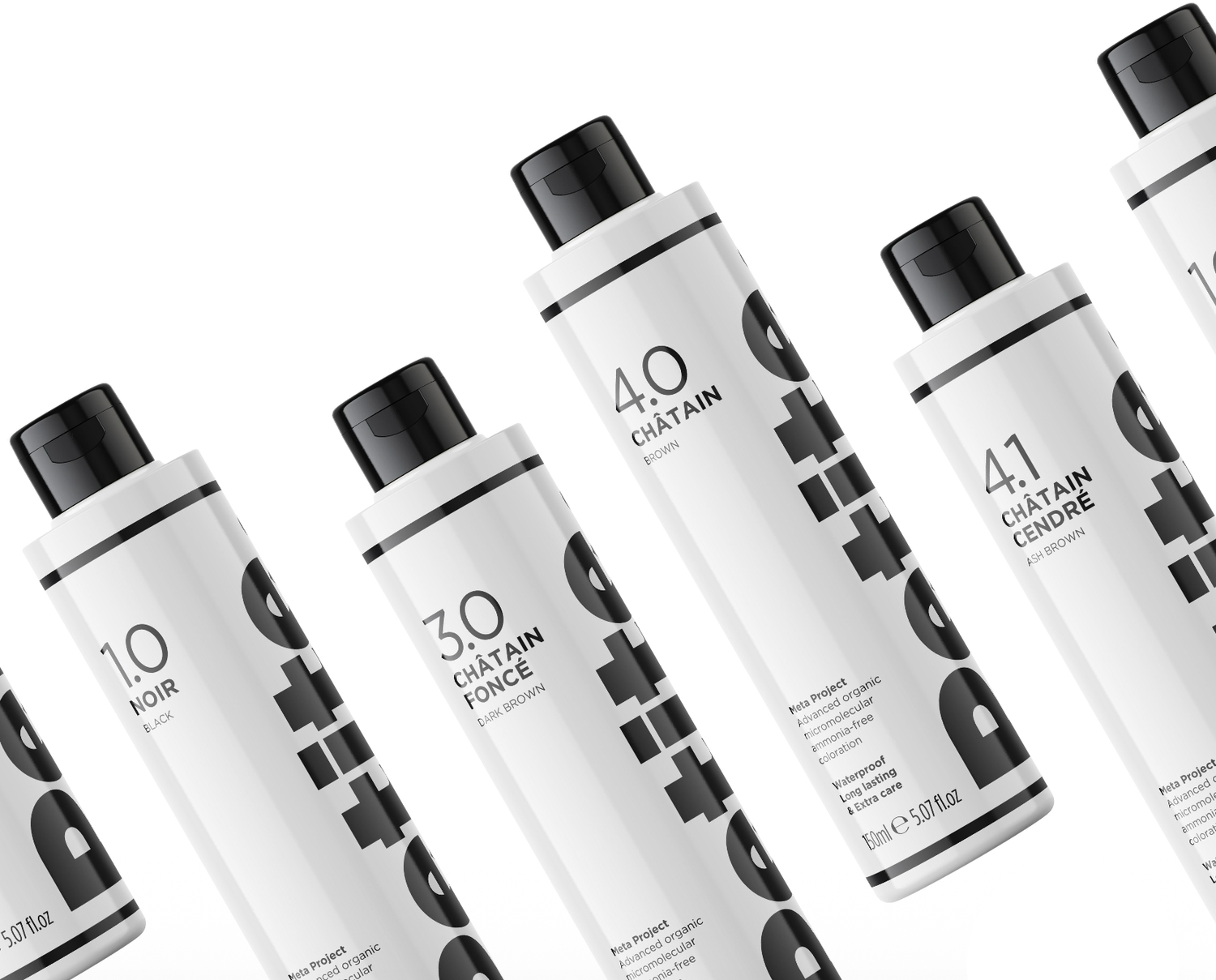 Gamme de coloration & oxydation "Meta" : Formulée avec des ingrédients organiques d’exception, garantit une performance haut de gamme tout en respectant l’environnement. Cette gamme combine une couverture colorante exceptionnelle, des soins enrichis aux ingrédients nobles et une brillance éclatante.