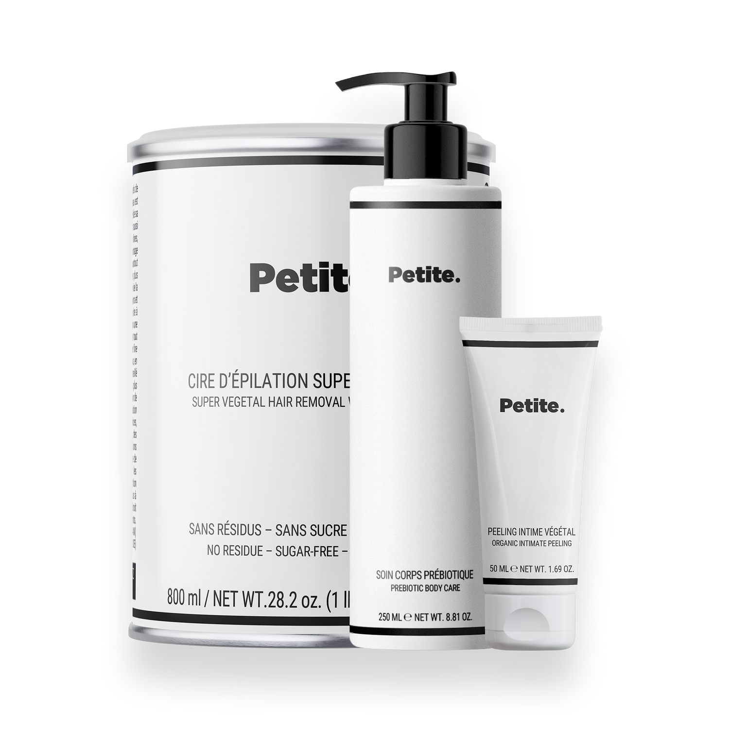 Le parti pris de Petite : la cire “super végétale”. Crémeuse, délicate et recommandée pour peaux sensibles, cette cire végétale retire efficacement le poil sans endommager le follicule, limite rougeurs et réactions, et offre une exfoliation naturelle qui réduit les poils incarnés. Son point de fusion plus bas améliore le confort et réduit la charge énergétique et le temps d’intervention ; à l’usage, on constate 10–30 % de produit en moins et jusqu’à 50 % de gain en énergie et en temps. Idéale aussi pour la pilosité masculine (poils plus épais), grâce à son excellente élasticité.